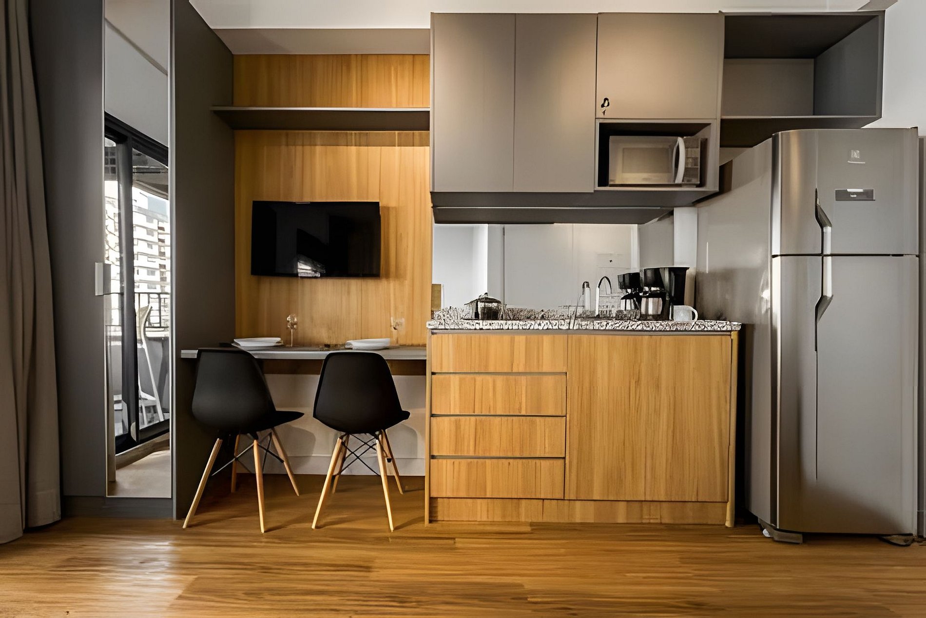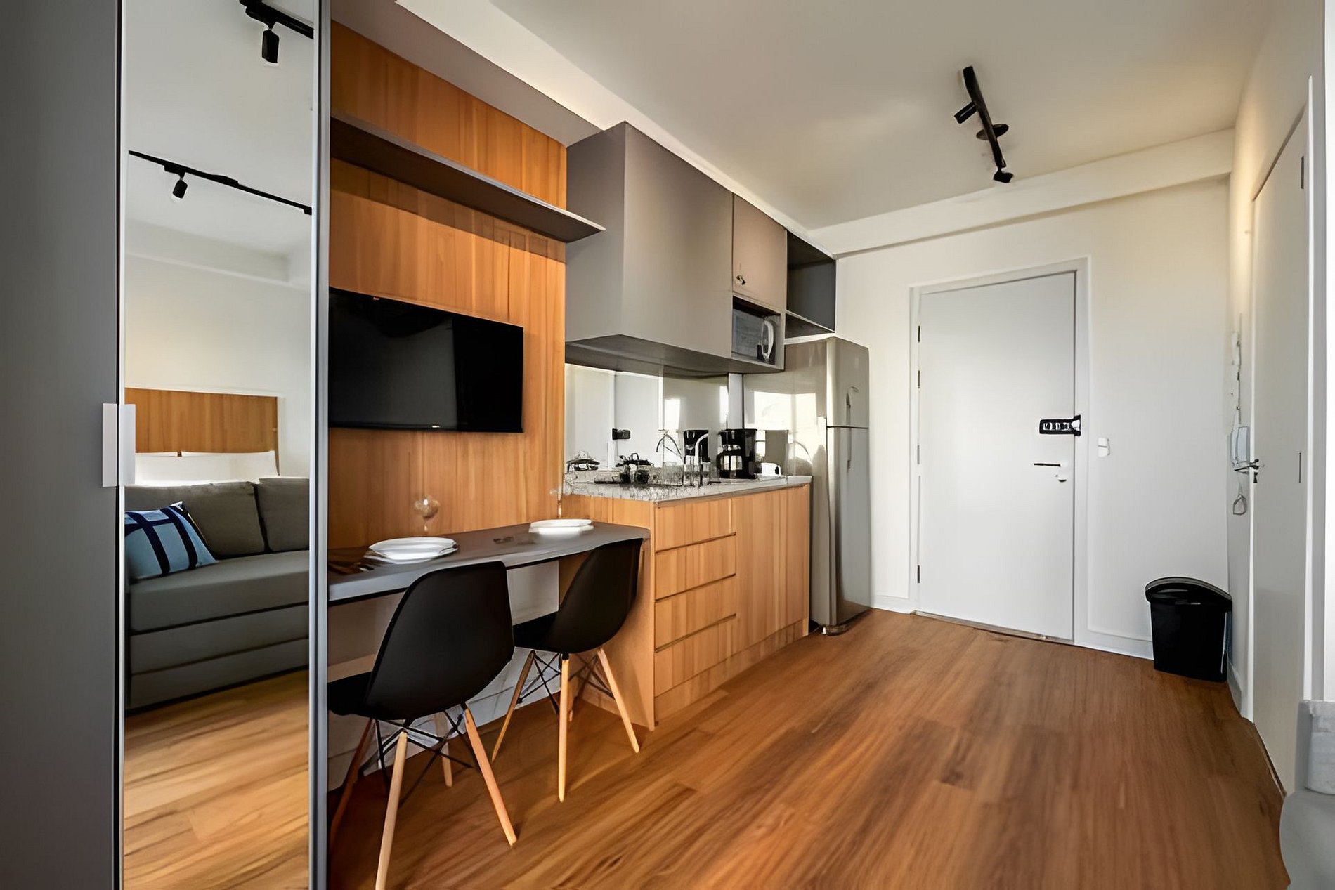 Hospede-se conosco nesse lindo estúdio recém construído em um bairro próximo às principais vias da Zona Sul, o KRONOS MOEMA oferece fácil acesso à Av. dos Bandeirantes, Av. 23 de Maio, Shopping Ibirapuera e está a apenas 6 minutos a pé da estação de metrô Moema. Você estará conectado a tudo o que São Paulo tem a oferecer! Apartamento completo com cama de casal e sofá cama para até 4 hóspedes! Unidade não residencial, sem acesso à piscina e academia.