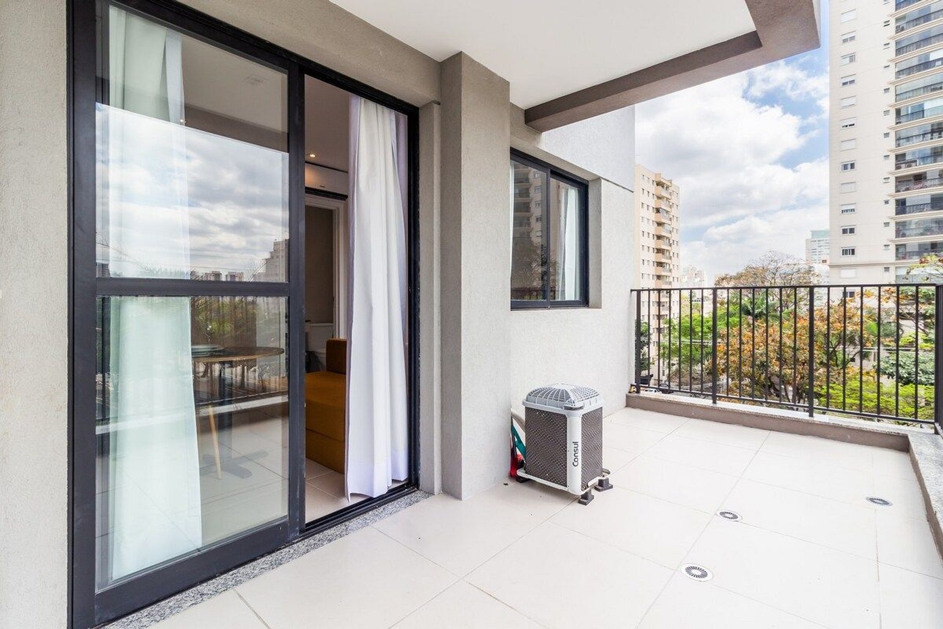 O estúdio foi recém reformado e está completo para sua estadia! - espaço integrado com quarto, sala e cozinha. Ar condicionado em todo espaço - banheiro completo - varanda com vista para a Av Ibirapuera - cama de casal e sofá cama - wifi rápido e estável - smarTV - cozinha completa - mesa e cadeira para home office - condomínio completo!