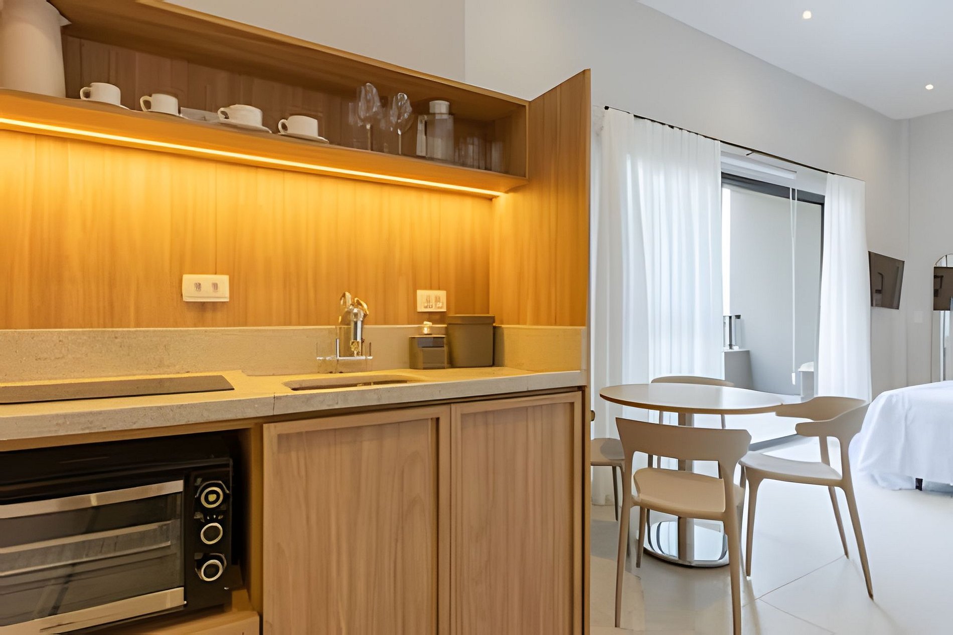 A cozinha é completa, com todos os utensílios e eletrodomésticos necessários para preparar suas refeições. Wi-Fi rápido e TV garantem momentos de descanso depois de um dia explorando São Paulo.
