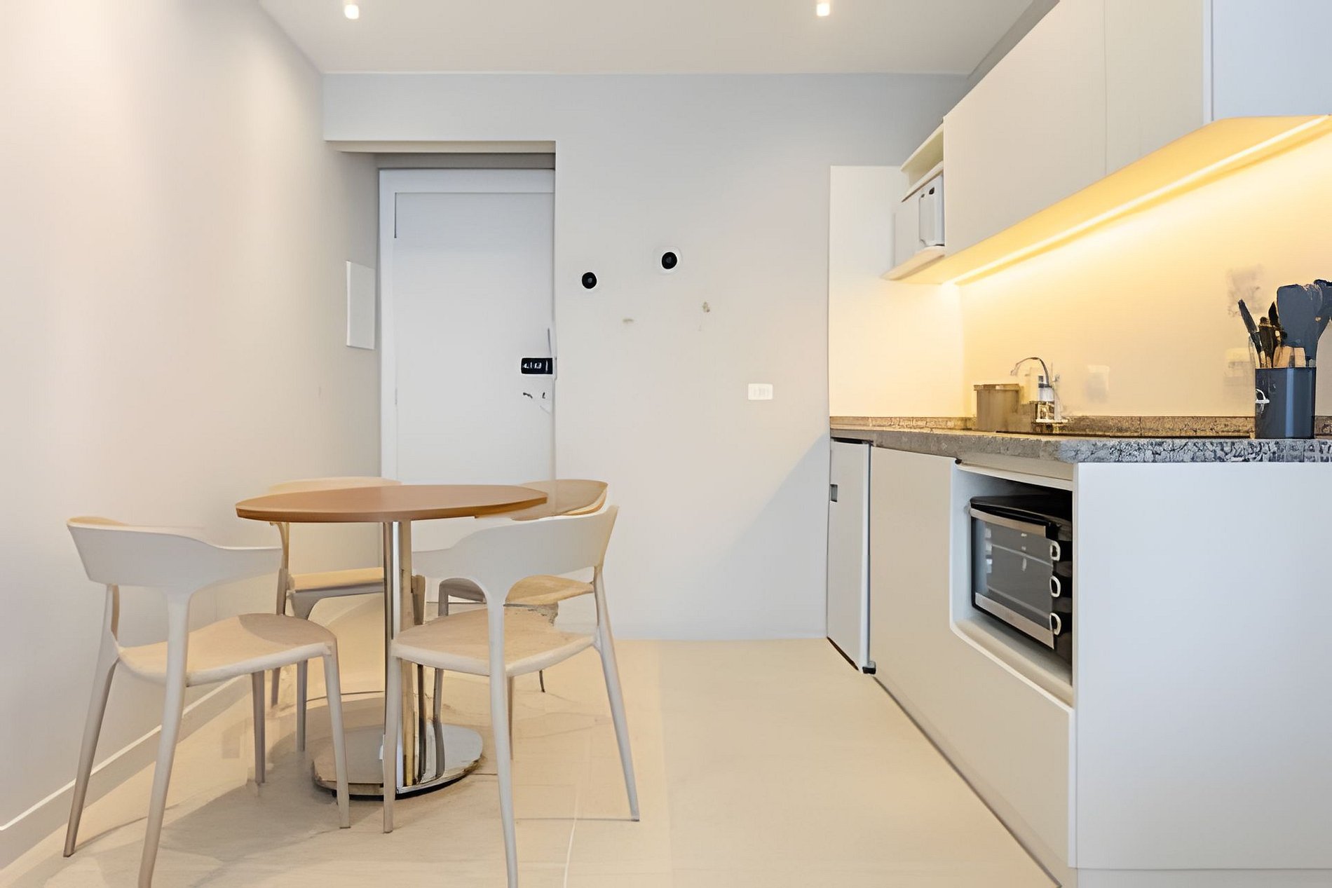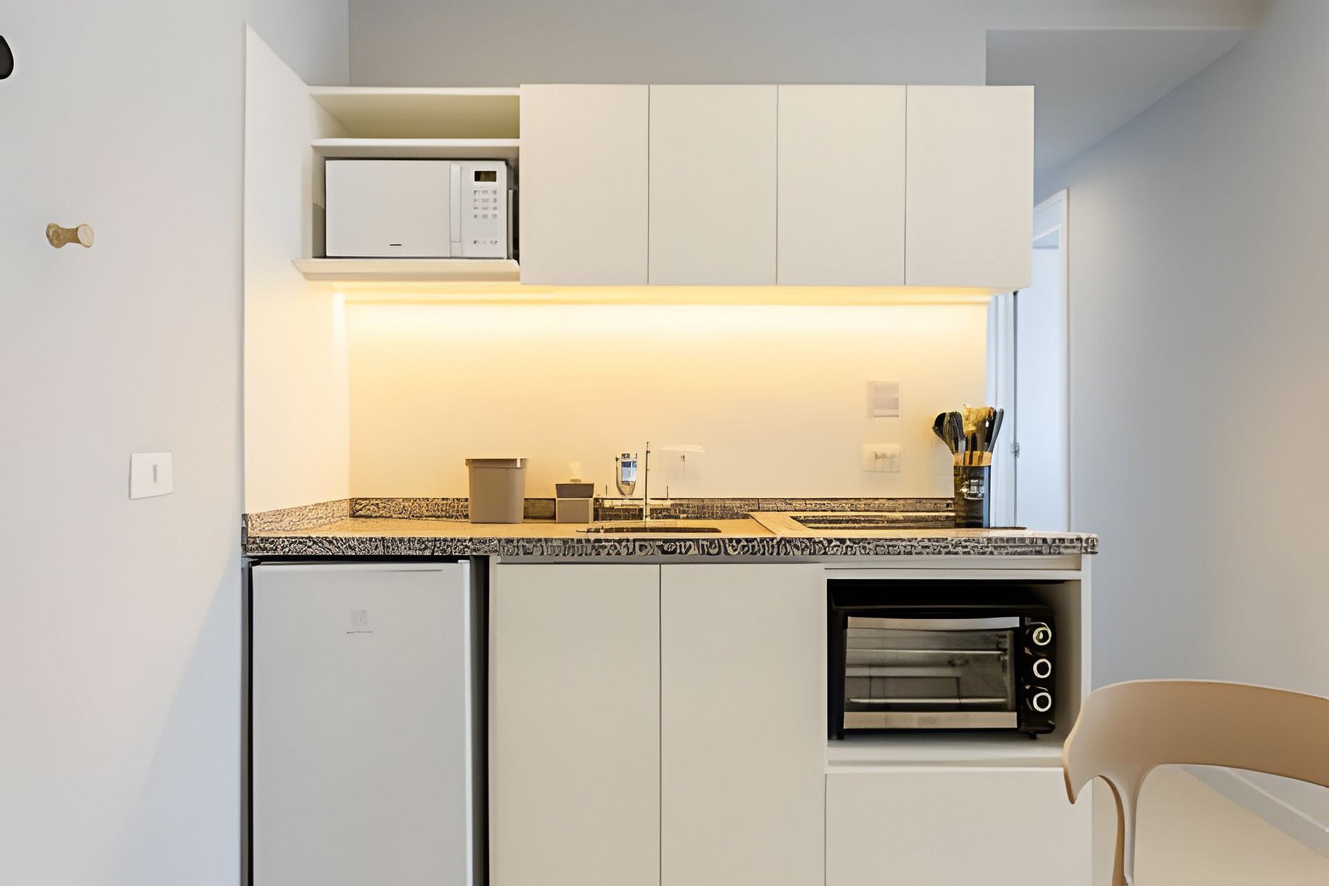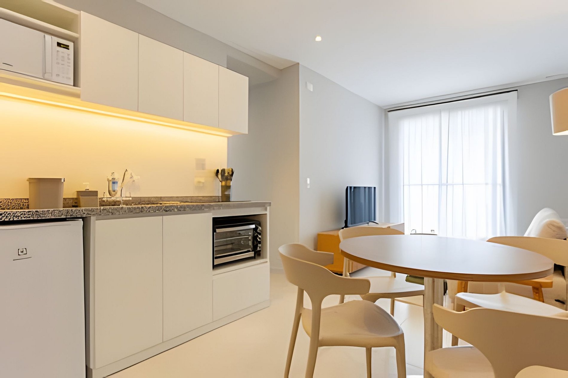 O apartamento acomoda confortavelmente até 5 pessoas, com 1 cama de casal (suíte), 1 cama de solteiro e 1 sofá cama tamanho casal, oferecendo praticidade e conforto para todos. A cozinha é completa, com todos os utensílios e eletrodomésticos necessários para preparar suas refeições. Wi-Fi rápido e TV garantem momentos de descanso depois de um dia explorando São Paulo.