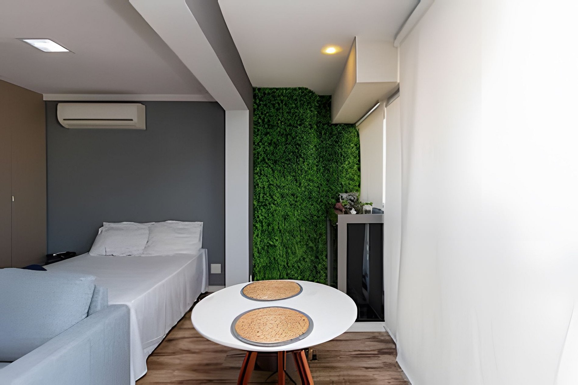 O estúdio tem 30m2 e está super completo para sua estadia! Apartamento com cama de casal e colchão extra de solteiro, acomodando bem até 3 pessoas!