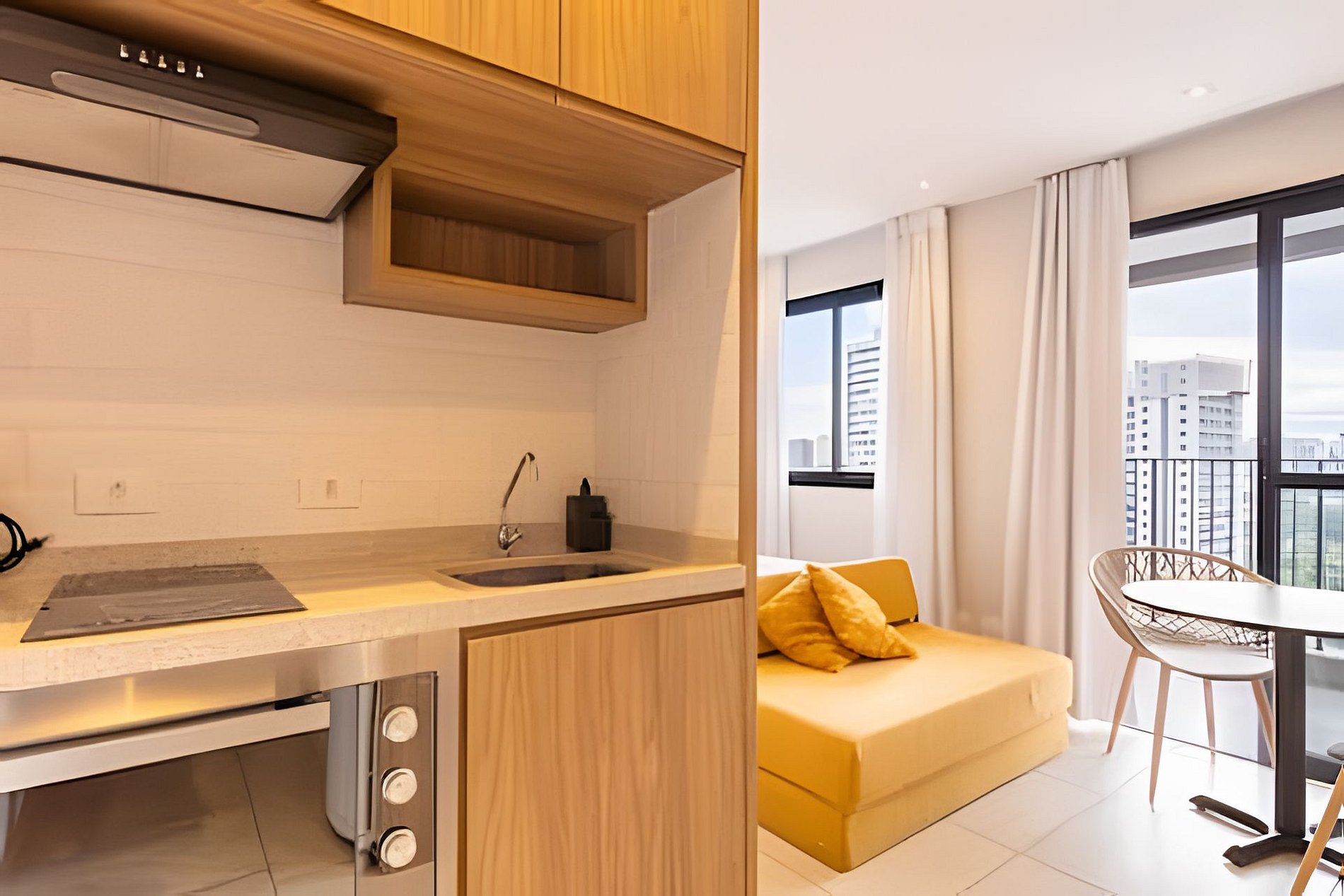 O estúdio foi recém reformado e está completo para sua estadia! - espaço integrado com quarto, sala e cozinha. Ar condicionado em todo espaço - banheiro completo - varanda - cama de casal e sofá cama - wifi rápido e estável - smarTV - cozinha completa - mesa e cadeira para home office - condomínio completo!